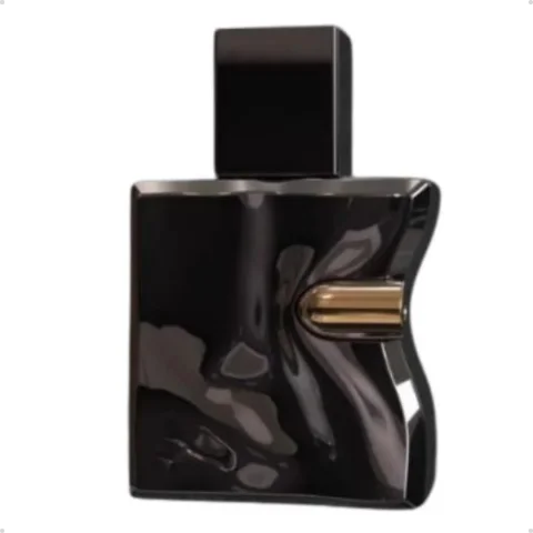 O frasco reflete a essência moderna e intrigante do perfume, com um design minimalista e detalhes que evocam mistério e elegância. Uma embalagem que combina perfeitamente com a personalidade da fragrância.