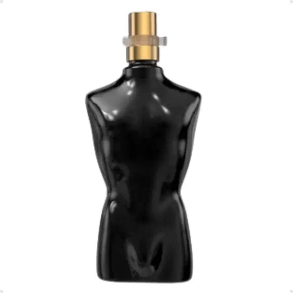 O frasco assume um tom preto sóbrio ou azul meia-noite, transmitindo a opulência e o mistério da fragrância noturna. As listras icônicas do marinheiro são mantidas, mas em um acabamento grafite ou preto brilhante. O conjunto, minimalista e impactante, comunica o prestígio e a modernidade desta versão intensa.