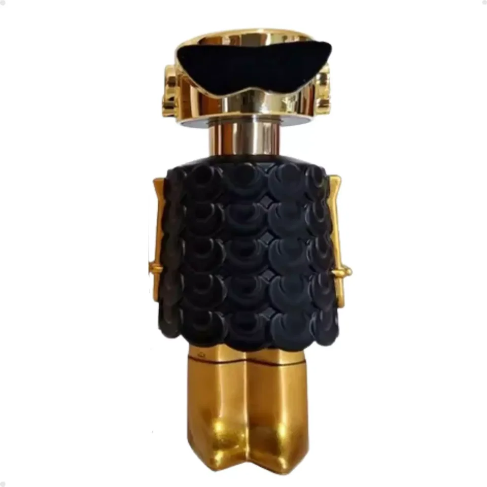 O frasco é uma expressão de criatividade e estilo. Seu design inovador em formato de silhueta, combinado com acabamentos dourados e detalhes que remetem ao universo da moda, reflete ousadia e sofisticação. É uma peça icônica que ressalta o DNA da marca Rabanne.