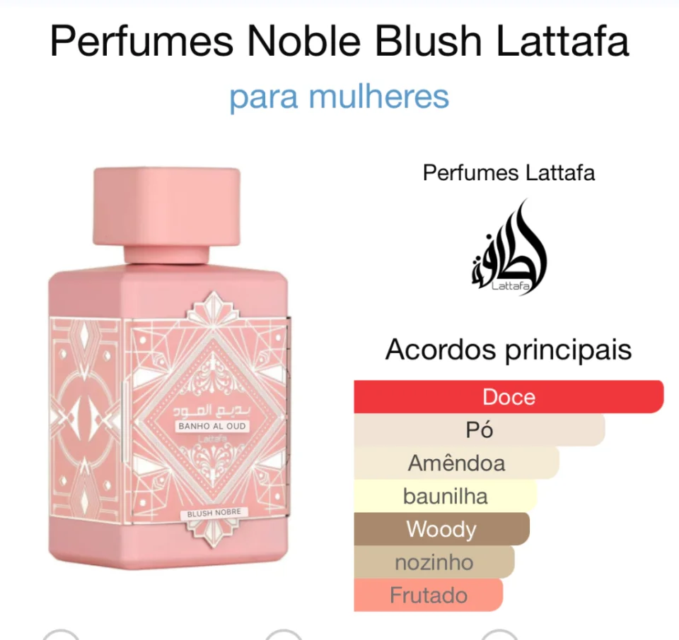 Perfume Árabe Original AL OUD NOBLE BLUSH LATTAFA (FEMININO) - EDP - 100ML